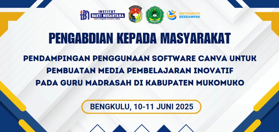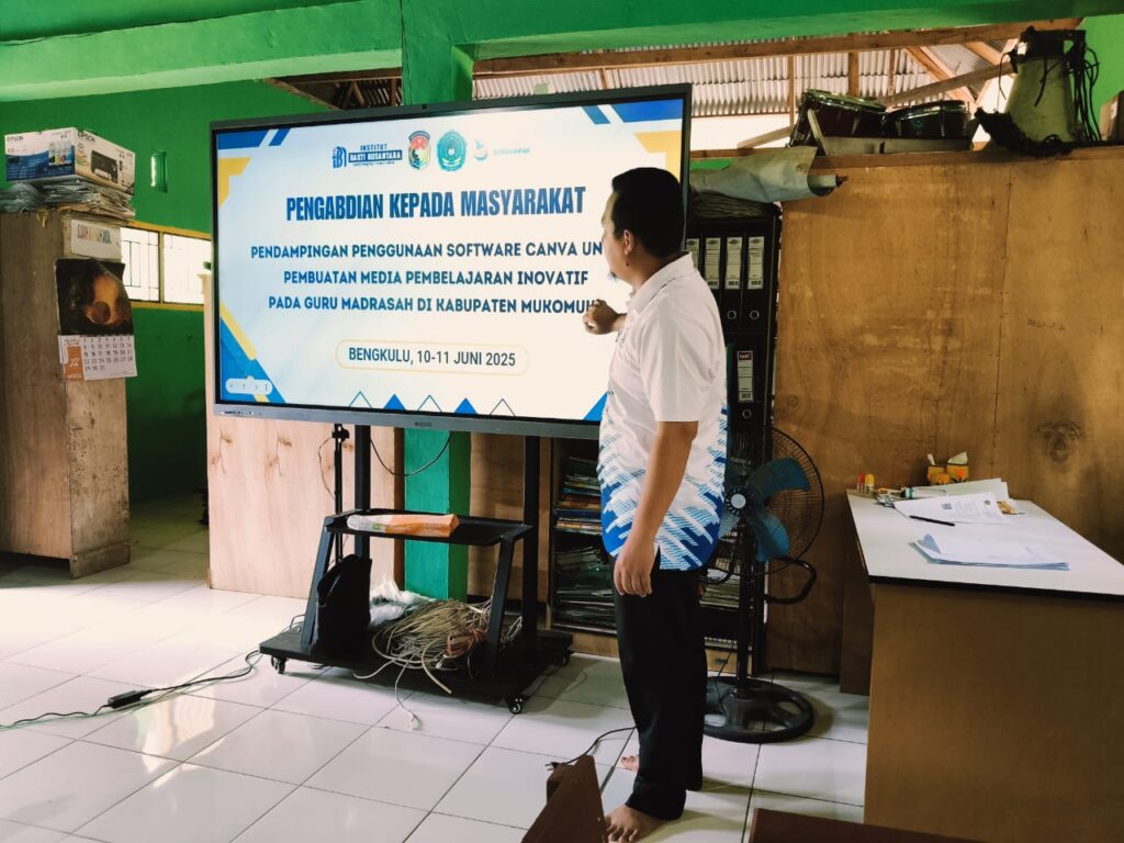 Mukomuko, 10 Juni 2025 – Dalam upaya meningkatkan kompetensi guru dalam mengembangkan media pembelajaran yang kreatif dan menarik, dosen dari Institut Bakti Nusantara (IBN) mengadakan kegiatan Pengabdian kepada Masyarakat (PkM) bertajuk “Membuat Media Pembelajaran Inovatif Berbasis Software Canva” bagi para guru di bawah naungan Kementerian Agama (Kemenag) Kabupaten Mukomuko.